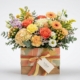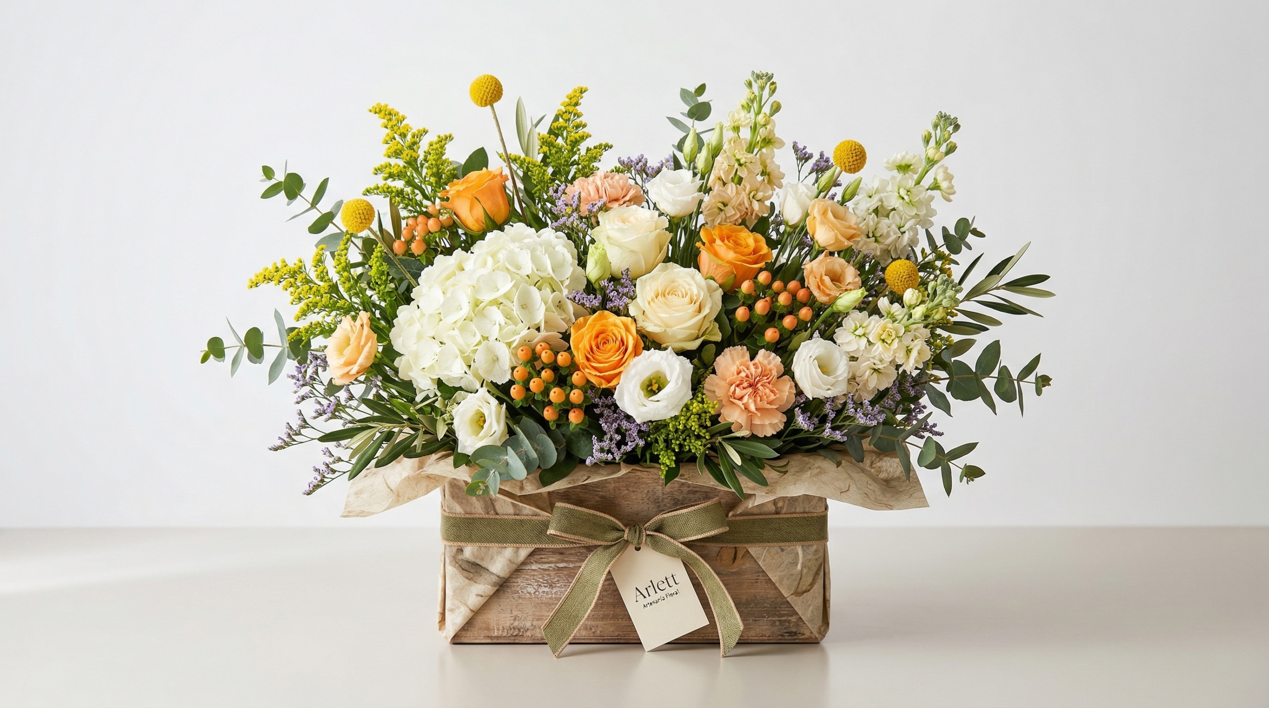 Este centro floral mediterráneo es ideal para regalar en cumpleaños, celebraciones, agradecimientos o simplemente para decorar cualquier espacio con un toque elegante y natural. Su formato en caja lo hace práctico, ya que no necesita jarrón y mantiene su presentación impecable desde el primer momento.