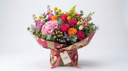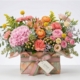 La composición incluye rosas, hortensias y flores de temporada cuidadosamente seleccionadas, acompañadas de verdes decorativos que aportan frescura y volumen. El resultado es un diseño equilibrado y moderno, ideal para quienes buscan un arreglo floral con personalidad y carácter.