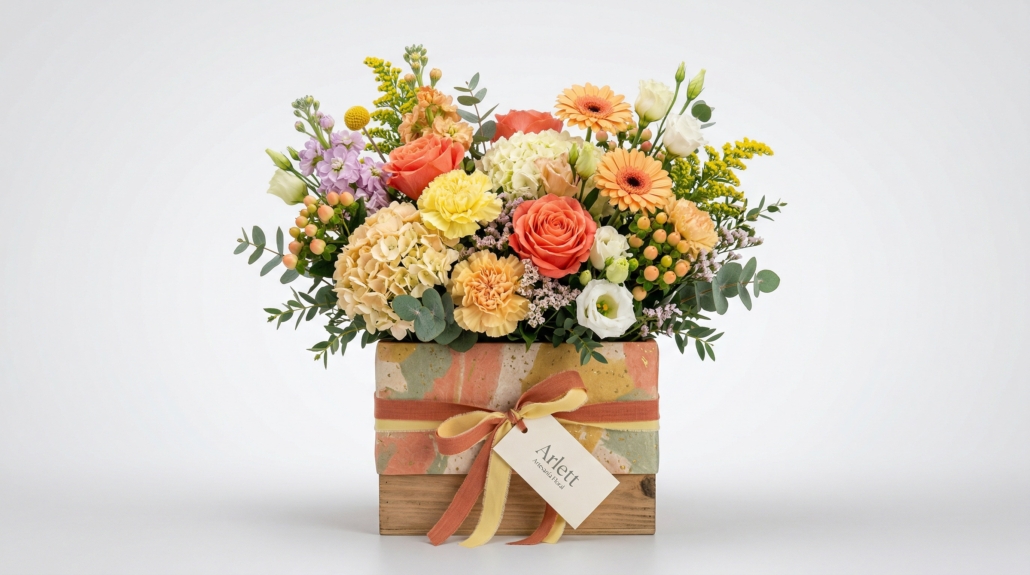 El formato en caja le da un toque actual y práctico, ideal para quienes buscan un arreglo floral diferente a los ramos tradicionales. Además, permite colocarlo fácilmente en cualquier espacio sin necesidad de jarrón.