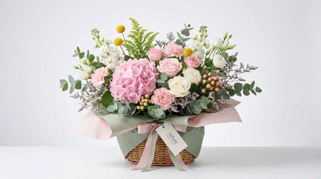 Regalar una cesta de flores delicada es una forma elegante de transmitir emociones sinceras con un estilo cuidado y lleno de detalle.