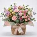 Si buscas una cesta de flores en Alicante con un estilo dulce y sofisticado, esta opción es ideal. Es perfecta para cumpleaños, nacimientos, agradecimientos o simplemente para sorprender con un gesto bonito.