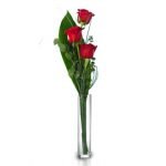 Ramo de 2 rosas rojas de tallo largo, decoradas con verdes variados según época del año. Cristal no Incluido.