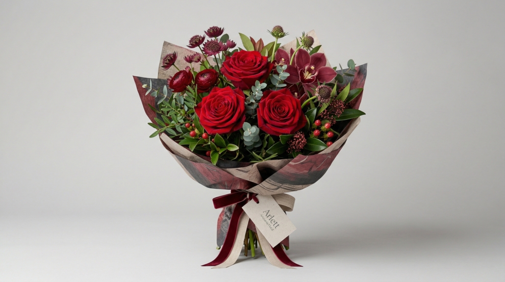 Este ramo de flores rojas en Alicante destaca por su equilibrio entre lo clásico y lo moderno. Las rosas rojas aportan intensidad y romanticismo, mientras que las flores secundarias añaden originalidad y un acabado más premium, ideal para quienes quieren ir más allá del ramo tradicional.